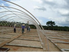 3、 支架的長度、高度、弧度、粗細均可任意調整,無需支柱,大大提高了棚內的采光效果、機械化操作效率和土地的使用面積,可建大跨度春秋大棚和日光溫室。